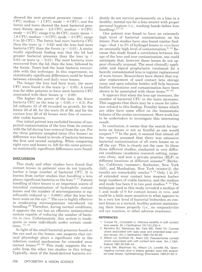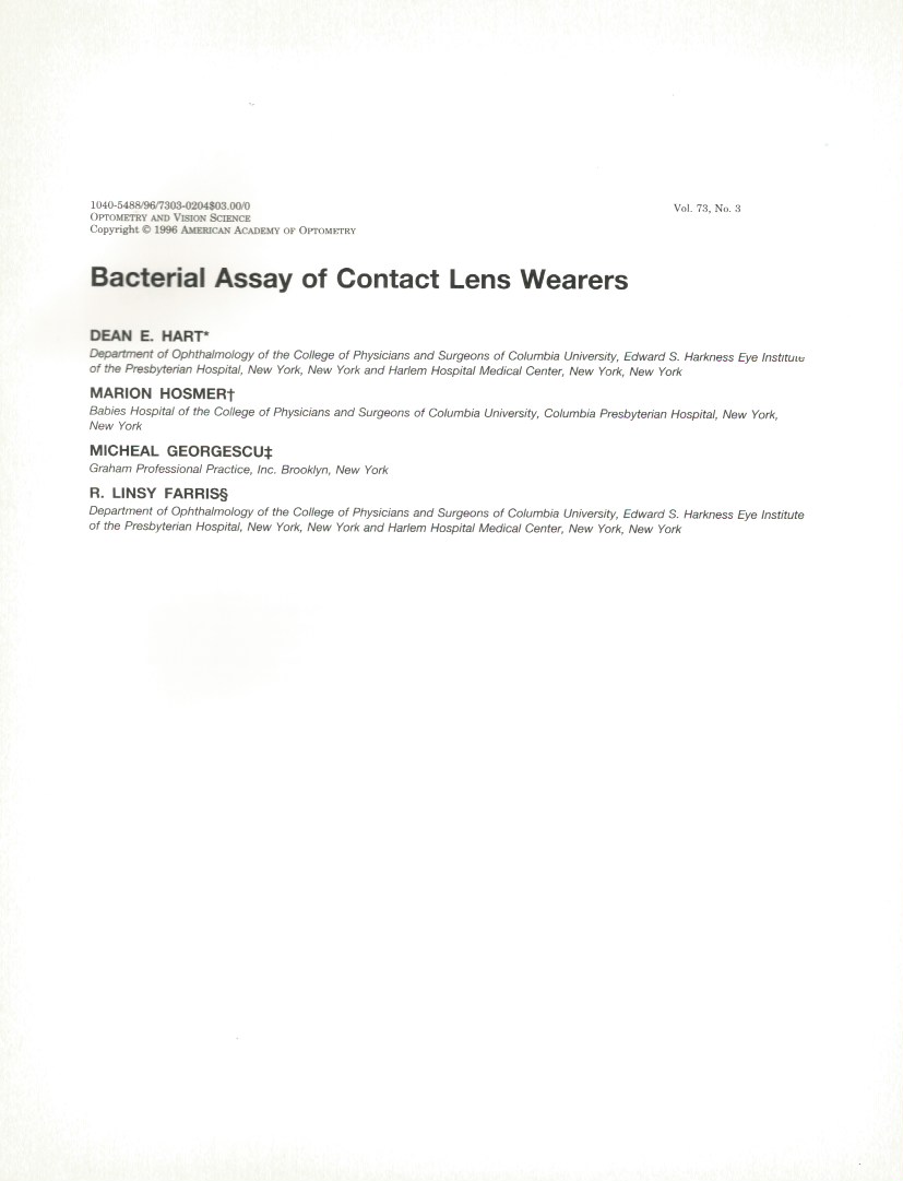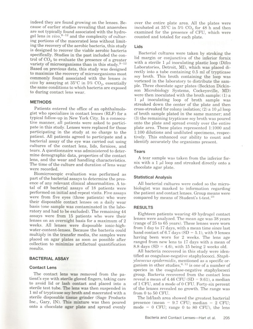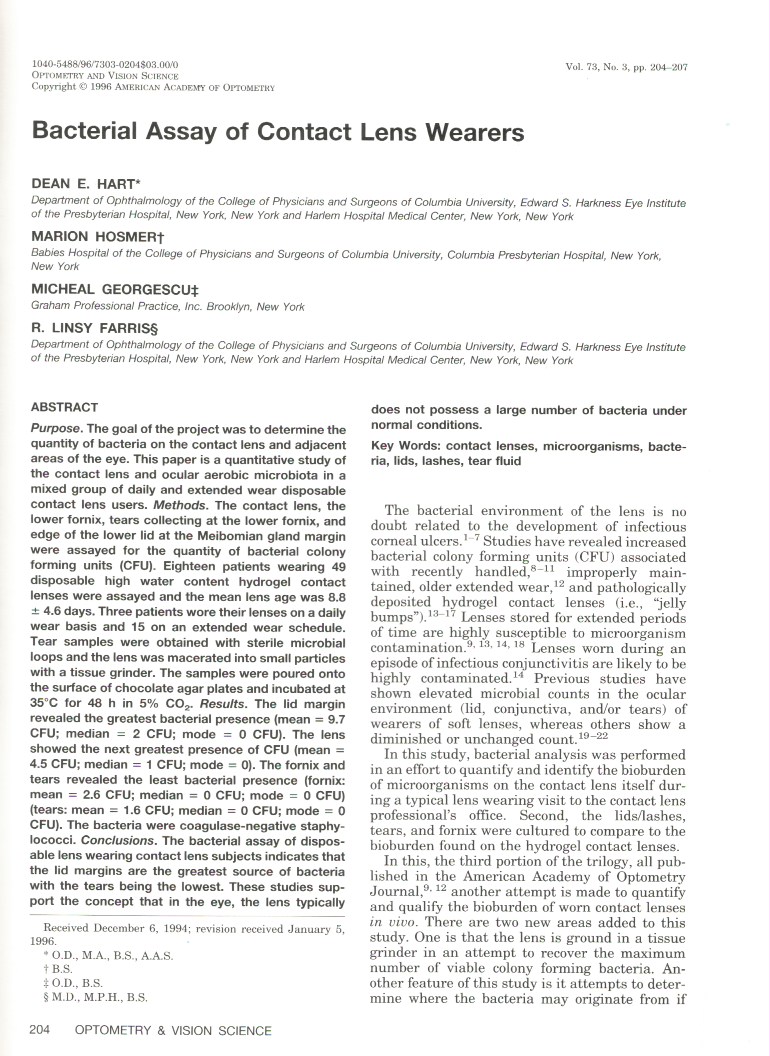Bacterial Assay of Contact Lens Wearers
